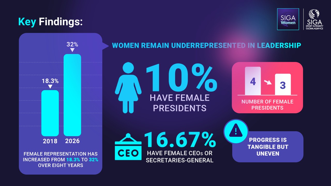 The Sport Integrity Global Alliance (SIGA) has released the 2026 SIGA Survey on Female Representativeness at the Highest Executive Organs of International Sports Federations, revealing that while meaningful progress has been achieved in advancing gender equity in global sport governance, continued efforts are required to sustain and accelerate this trajectory.