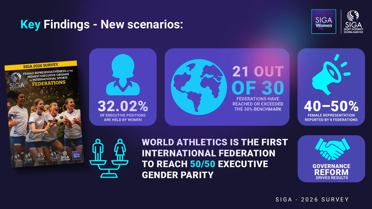 The SIGA 2026 Survey on Female Representativeness at the Highest Executive Organs of International Sports Federations is available for download via SIGA’s website.